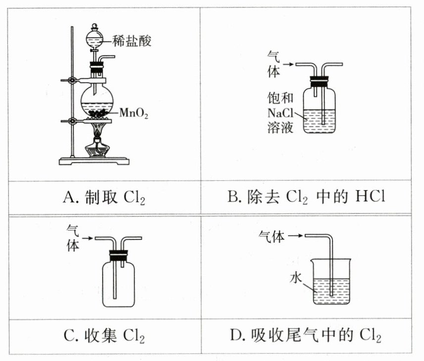 5.(2023·江苏卷)实验室制取$Cl_{2}$的实验原理及装置均正确的是 ( )