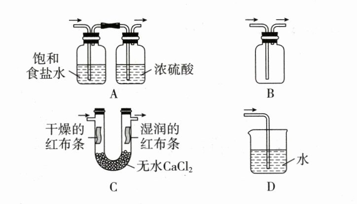(3)氯气与水反应生成的HClO具有漂白性,而干燥的氯气没有漂白性,通过装置B后氯气中含有水蒸气,因此先通过湿润的有色布条,再通过干燥装置(选择固体干燥剂),最后通过干燥的有色布条。