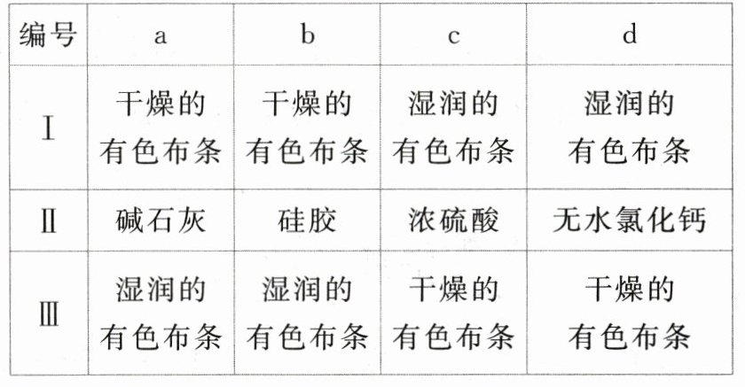 (3)装置C的实验目的是验证氯气是否具有漂白性,为此C中Ⅰ、Ⅱ、Ⅲ依次放入物质的组合是______(填编号)。