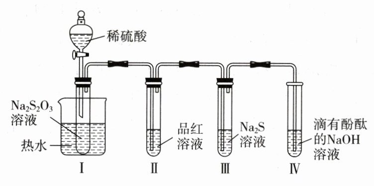 C [Ⅰ中试管内发生反应S₂O₃²⁻ + 2H⁺ = S↓ + SO₂↑ + H₂O,氢元素化合价不变,H⁺不体现氧化性,A错误;Ⅱ中品红溶液褪色,体现SO₂的漂白性,B错误;撤掉水浴,重做实验,反应速率减慢,Ⅳ中红色褪去的速率减慢,D错误。]