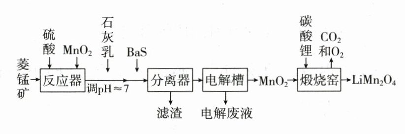 (6)煅烧窑中,生成$LiMn_2O_4$反应的化学方程式是 。