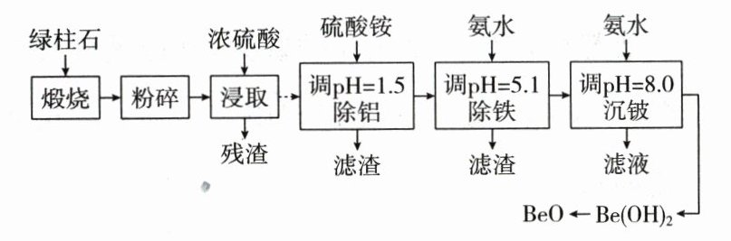 (5)沉铍时,将$pH$从$8.0$提高到$8.5$,则铍的损失降低至原来的 $\%$。