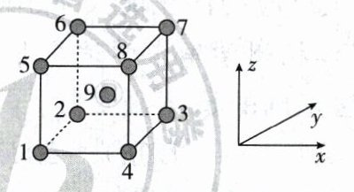 ①若原子1,原子3,原子7的坐标分别为$(0,0,0)$,$(1,1,0)$,$(1,1,1)$;则原子8,原子9的坐标分别为 , 。