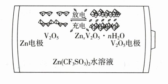 10.(2023·新课标卷)一种以V₂O₅和Zn为电极、Zn(CF₃SO₃)₂水溶液为电解质的电池,其示意图如下所示。放电时,Zn²⁺可插入V₂O₅层间形成ZnₓV₂O₅·nH₂O。下列说法错误的是 ( )