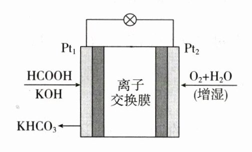B. Pt₁的电极反应式为HCOOH + 3OH⁻ - 2e⁻ = HCO₃⁻ + 2H₂O