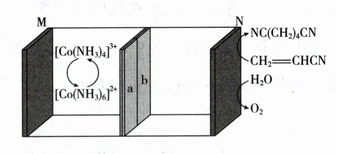 15.(2023·石家庄市高三一模)电化学合成具有反应条件温和、反应试剂纯净和生产效率高等优点,利用下图所示装置可合成己二腈[$NC(CH_{2})_{4}CN$]。充电时生成己二腈,放电时生成$O_{2}$,其中a、b是互为反置的双极膜,双极膜中的$H_{2}O$会解离出$H^{+}$和$OH^{-}$向两极移动。下列说法正确的是( )