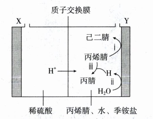 (2)Y极区溶液呈酸性会加快丙腈的生成,导致己二腈的产率降低,结合图分析原因是______。