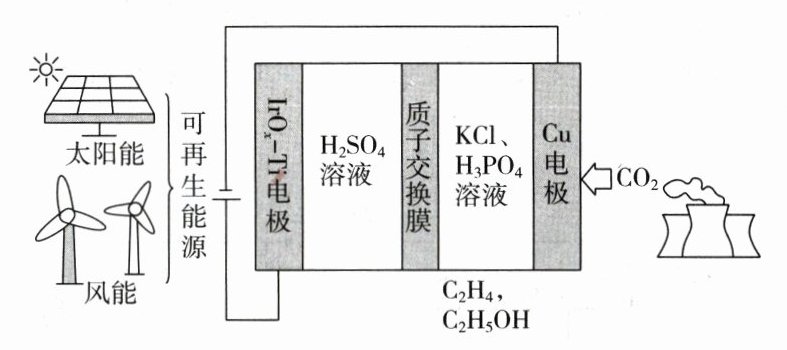 C. 阴极发生的反应有:$2\mathrm{CO}_{2}+12\mathrm{H}^{+}+12\mathrm{e}^{-}\xlongequal{\;\;}\mathrm{C}_{2}\mathrm{H}_{4}+4\mathrm{H}_{2}\mathrm{O}$