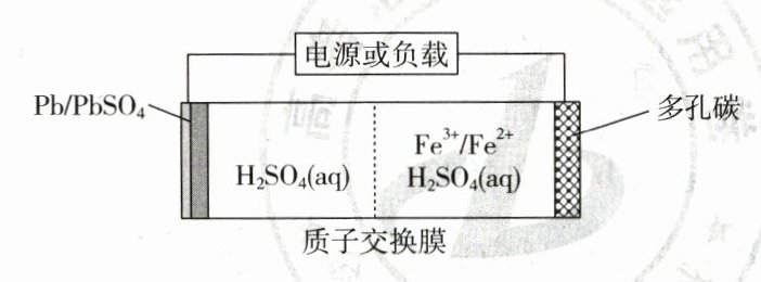 D. 充电总反应:$\mathrm{Pb}+\mathrm{SO}_{4}^{2 - }+2\mathrm{Fe}^{3 + }\xlongequal{\;\;}\mathrm{PbSO}_{4}+2\mathrm{Fe}^{2 + }$