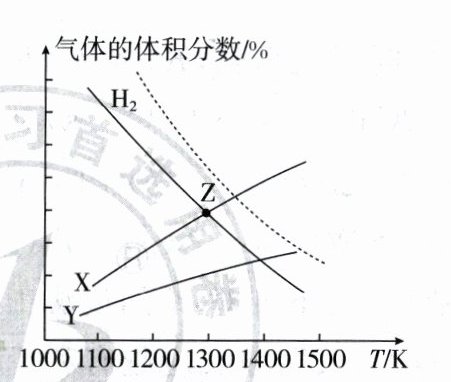 由题图知Z点时H₂(g)与H₂O(g)的体积分数相等,则4 - 4a = 2a,a≈0.667,所以H₂的转化率约为66.7%,D正确。]