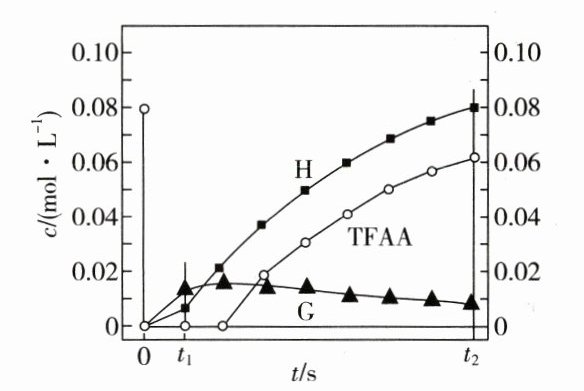 D. 反应达平衡后,TFAA 的浓度小于$0.08\ \mathrm{mol}\cdot\mathrm{L}^{-1}$