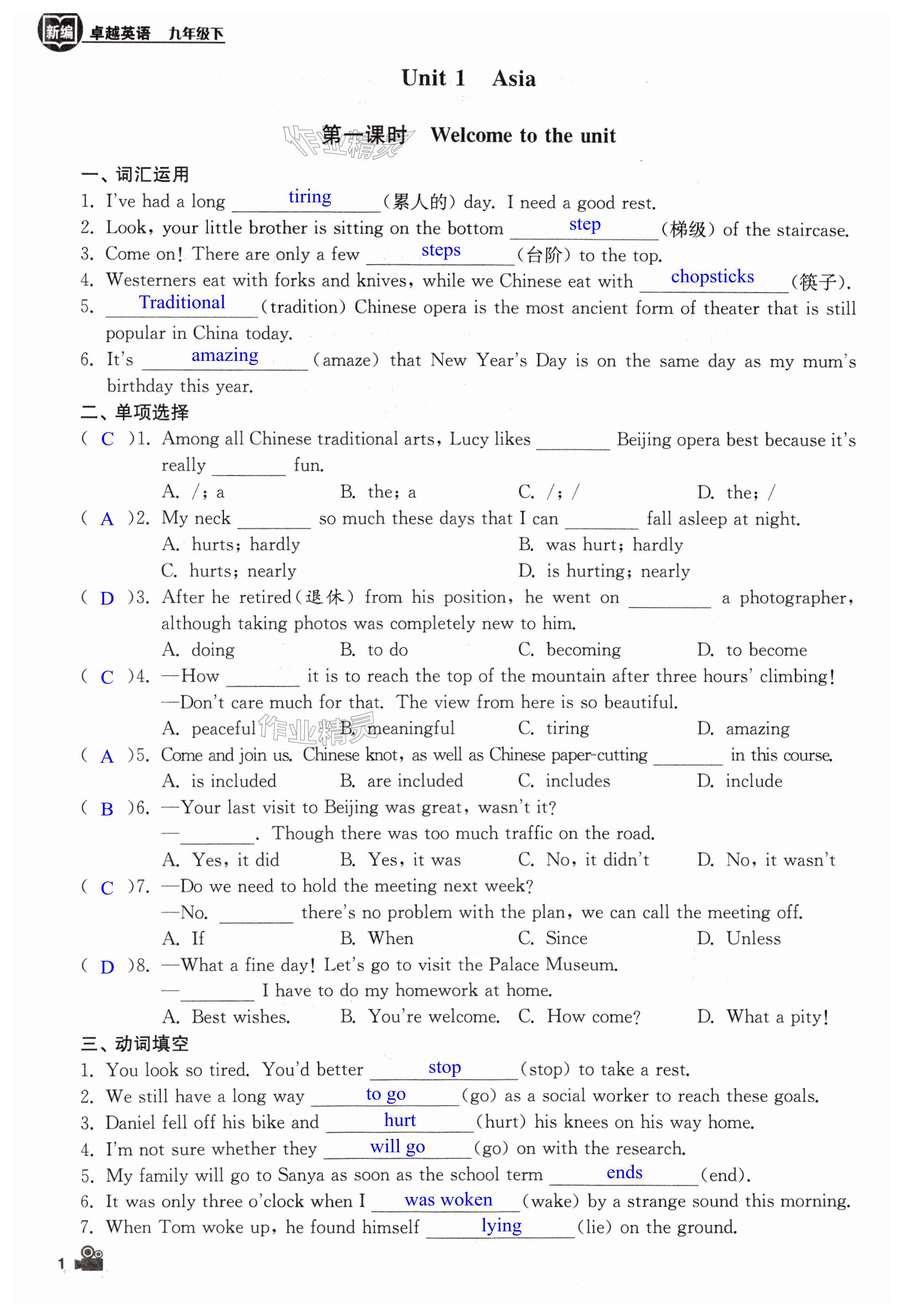 注:目前有些书本章节名称可能整理的还不是很完善,但都是按照顺序排列的,请同学们按照顺序仔细查找。练习册 2025年卓越英语九年级下册译林版 答案主要是用来给同学们做完题方便对答案用的,请勿直接抄袭。