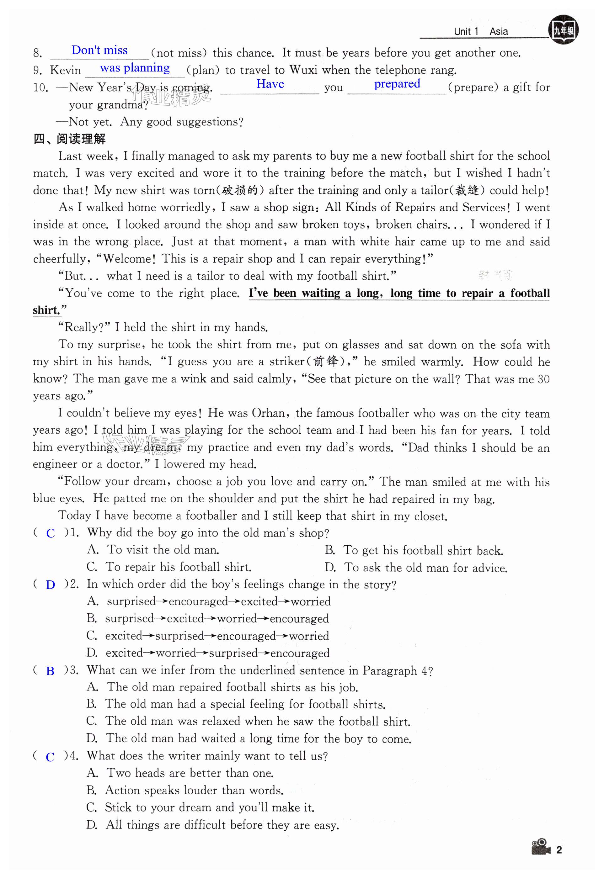 注:目前有些书本章节名称可能整理的还不是很完善,但都是按照顺序排列的,请同学们按照顺序仔细查找。练习册 2025年卓越英语九年级下册译林版 答案主要是用来给同学们做完题方便对答案用的,请勿直接抄袭。