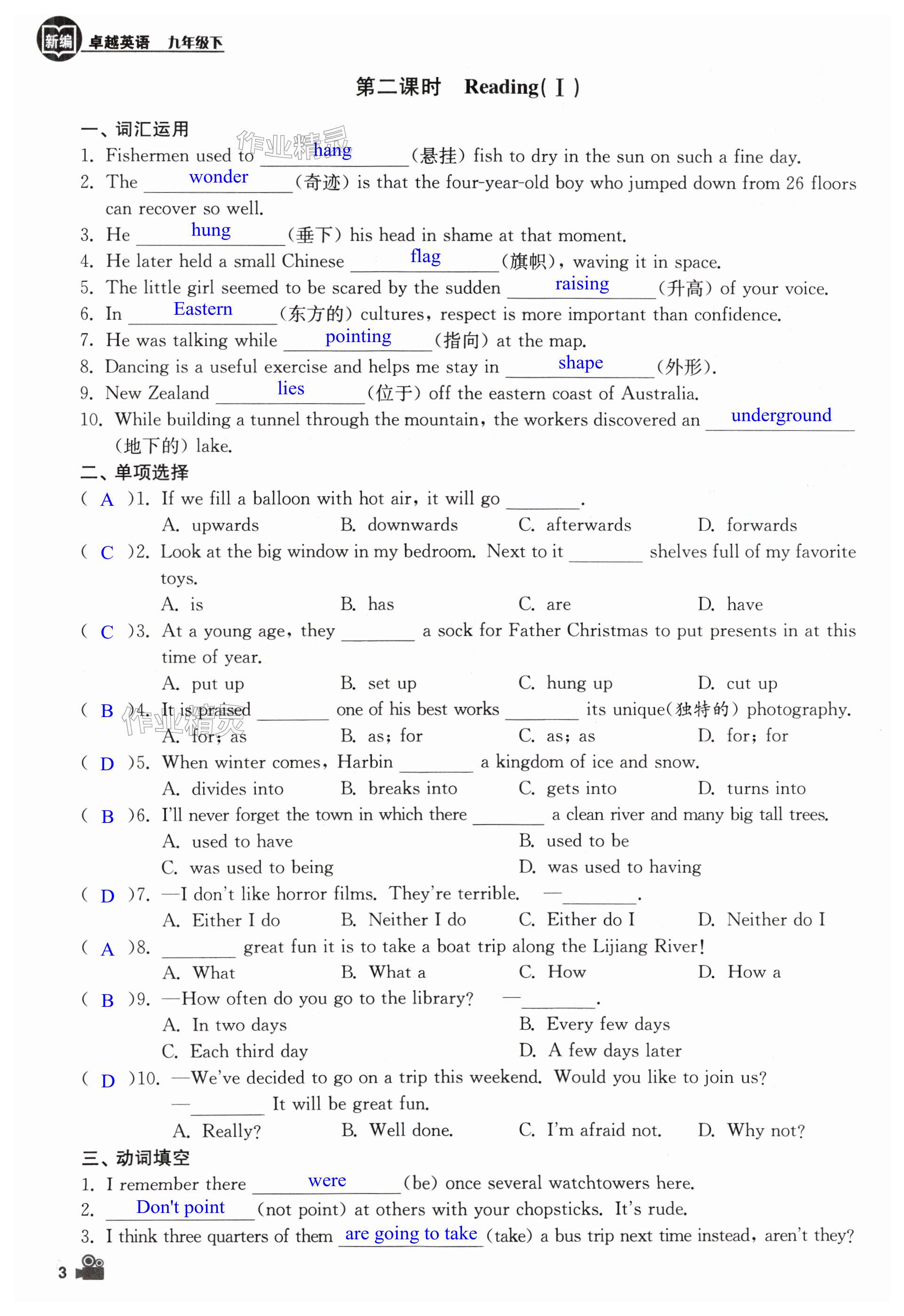 注:目前有些书本章节名称可能整理的还不是很完善,但都是按照顺序排列的,请同学们按照顺序仔细查找。练习册 2025年卓越英语九年级下册译林版 答案主要是用来给同学们做完题方便对答案用的,请勿直接抄袭。
