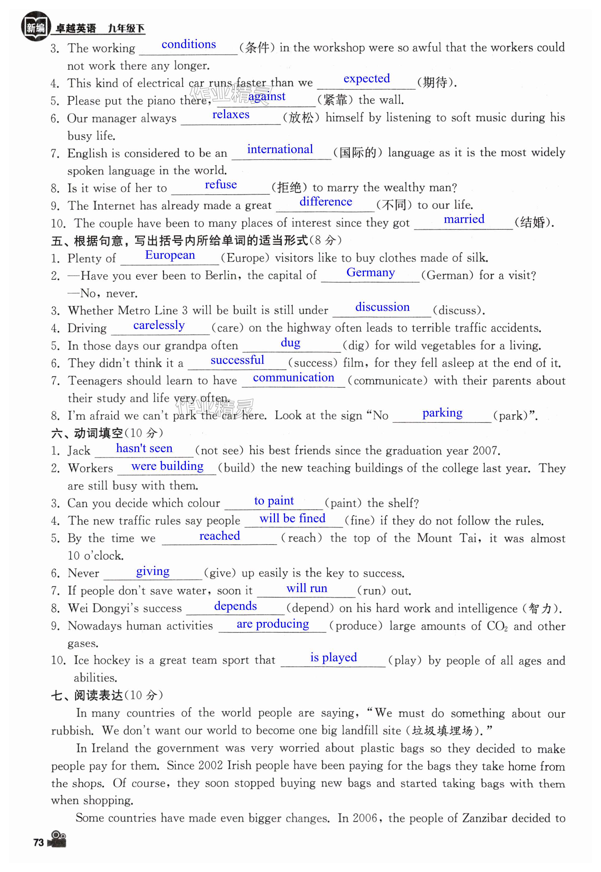 注:目前有些书本章节名称可能整理的还不是很完善,但都是按照顺序排列的,请同学们按照顺序仔细查找。练习册 2025年卓越英语九年级下册译林版 答案主要是用来给同学们做完题方便对答案用的,请勿直接抄袭。