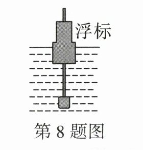 8. 浮标是浮在海面的一种航标,用以标示航道范围、指示浅滩、碍航物等的海面助航标志.如图所示是小明制作的浮标模型,下列说法正确的是 ( )