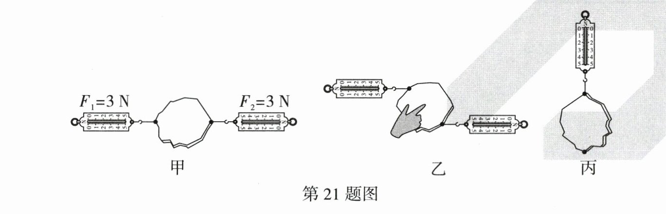 20. (中考新考法·器材生活化)小丽外出旅游住酒店期间,发现酒店配备的牙膏盖中间有一个尖头,如图甲所示,使用很小的力就可以利用尖头戳破封口膜.因此她猜想压力的作用效果与____________有关.于是她用质量可忽略的塑料瓶和海绵进行实验,在塑料瓶中装满水,依次正放和倒放在海绵上,如图乙、丙所示.