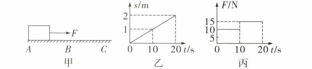 16. 如图甲所示,水平面AB段和BC段粗糙程度不同,物体在拉力F的牵引下,0~10 s从A运动到B,10~20 s再从B运动到C,其运动过程中的s - t、F - t图像如图乙、丙所示. 则物体在到达B点前受_______(选填“平衡”或“非平衡”)力作用;物体在BC段运动的过程中所受的摩擦力为_______N.
