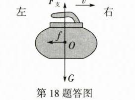 18. 冰壶运动被誉为“冰上象棋”,如图所示是比赛所用的冰壶,请在图中作出冰壶在冰面上向右减速滑行时的受力示意图.(忽略空气阻力,O点为冰壶重心)