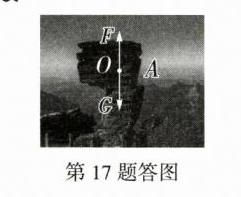 17. (教材图改编)如图所示为贵州梵净山上看似岌岌可危的“蘑菇石”,但它却一直静止在山顶,请画出石头A所受力的示意图.(两石块的接触面水平,O为石头A的重心)