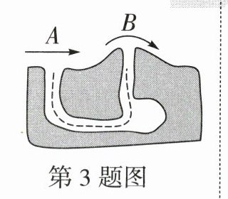 3. 如图所示是草原上土拨鼠的洞穴示意图,洞穴的洞口A是一处平地,洞穴的洞口B是一个小土坡,这样的结构能够改善地下洞穴内的通风情况,当风从洞穴上方吹过时 ( )