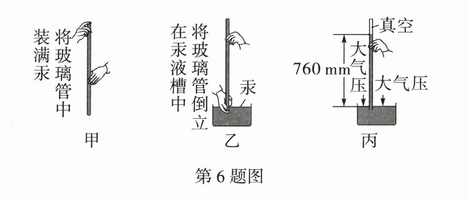 6. (教材本章练习第2题改编)如图所示是托里拆利实验的操作过程,下列说法中正确的是 ( )