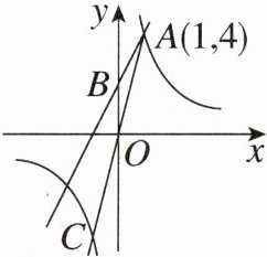 2. 如图,一次函数$y = 2x + b$与反比例函数$y=\frac{k}{x}(k\neq0)$的图象交于点$A(1,4)$,与$y$轴交于点$B$.