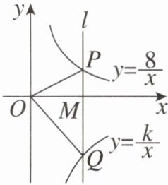 -18 解析:$S_{\triangle OPM}=\frac{1}{2}\times8 = 4$,$S_{\triangle OMQ}=\frac{1}{2}|k|=-\frac{1}{2}k$,