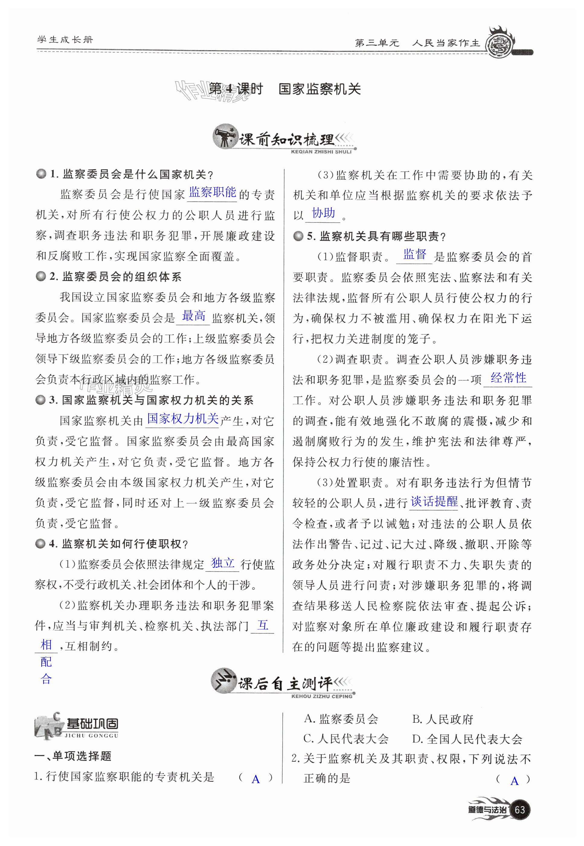 注:目前有些书本章节名称可能整理的还不是很完善,但都是按照顺序排列的,请同学们按照顺序仔细查找。练习册 2025年学生成长册八年级道德与法治下册人教版 答案主要是用来给同学们做完题方便对答案用的,请勿直接抄袭。
