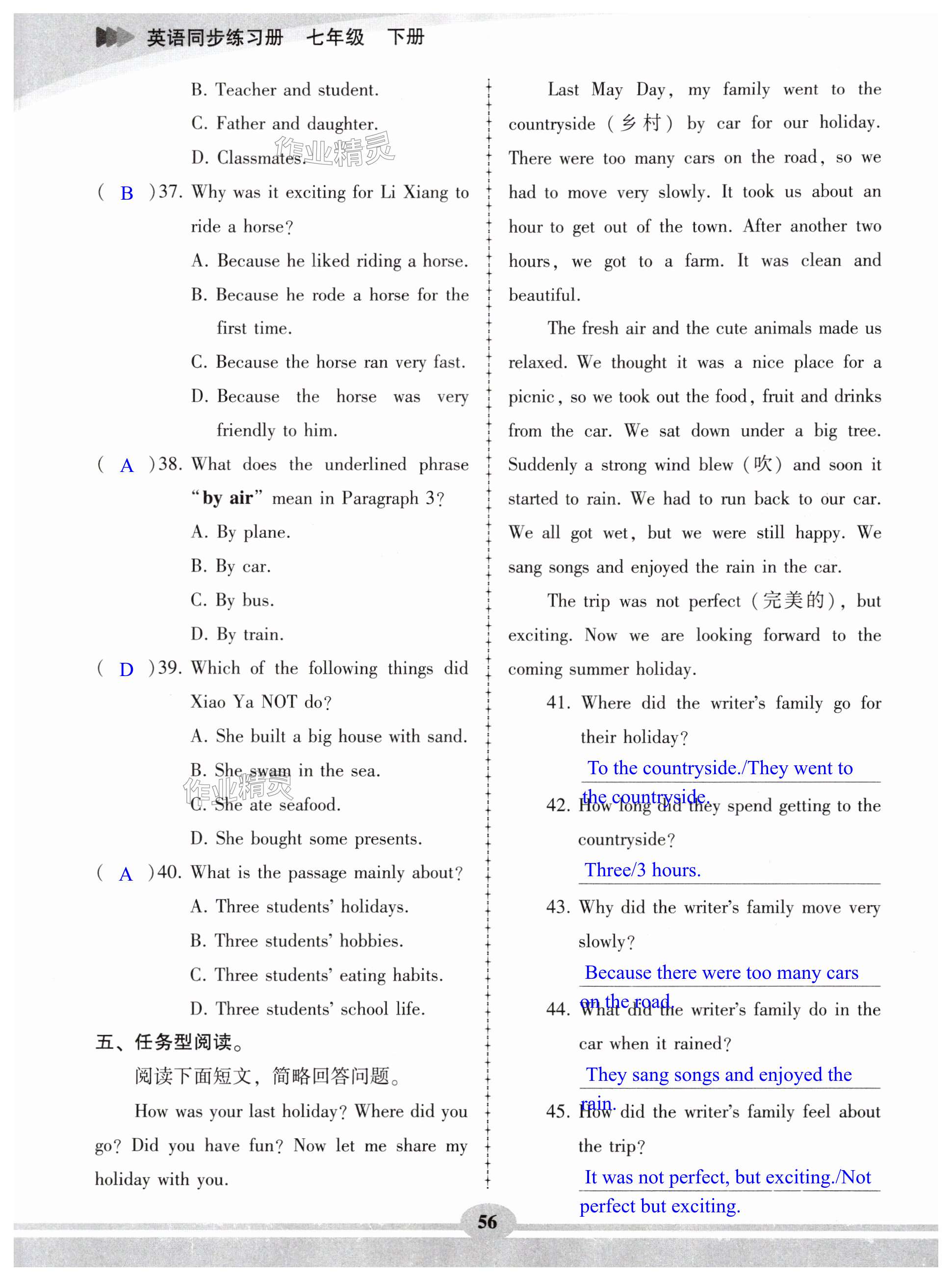 注:目前有些书本章节名称可能整理的还不是很完善,但都是按照顺序排列的,请同学们按照顺序仔细查找。练习册 2025年仁爱英语同步练习册七年级英语下册仁爱版 答案主要是用来给同学们做完题方便对答案用的,请勿直接抄袭。