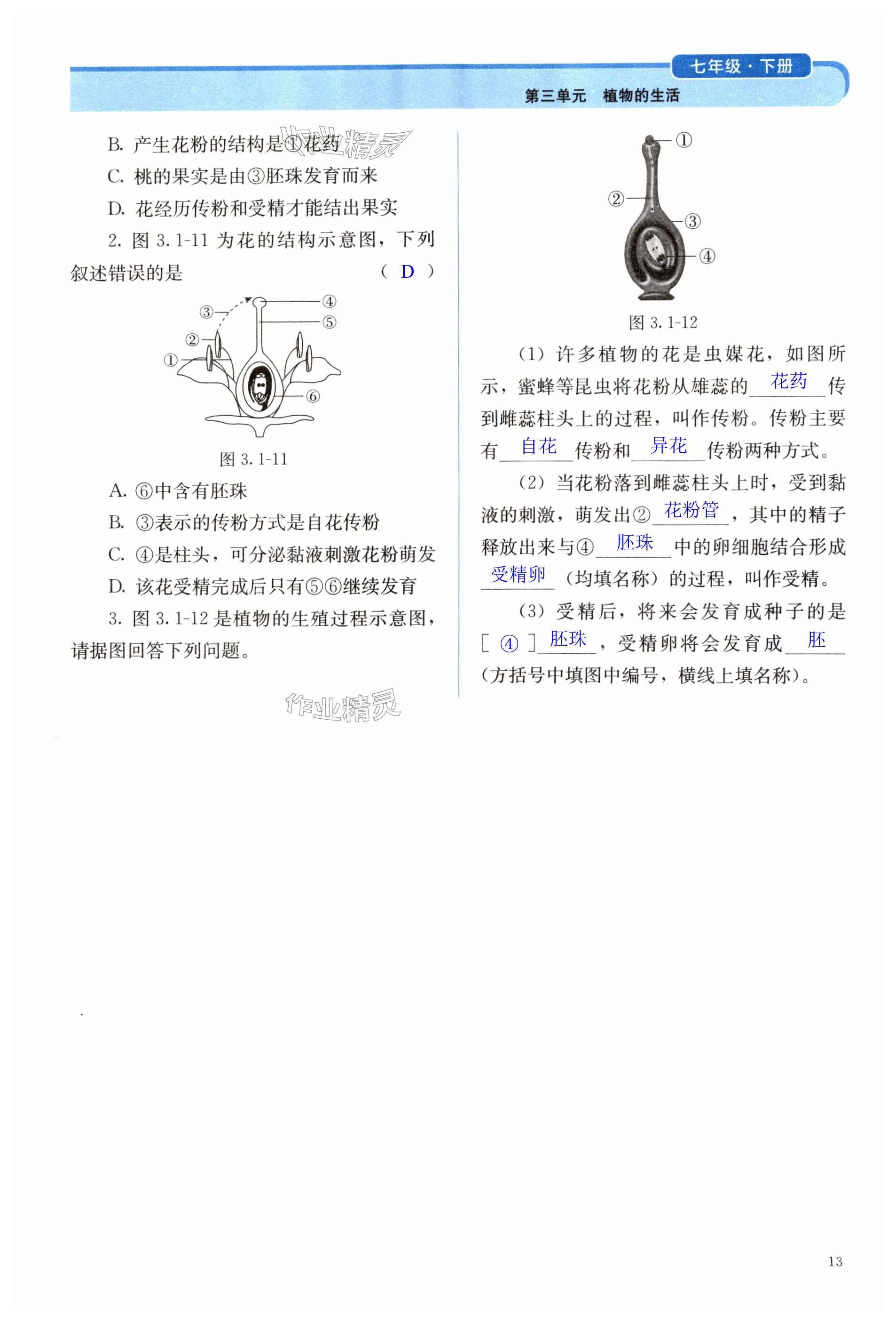 注:目前有些书本章节名称可能整理的还不是很完善,但都是按照顺序排列的,请同学们按照顺序仔细查找。练习册 2025年人教金学典同步练习册同步解析与测评七年级生物下册人教版 答案主要是用来给同学们做完题方便对答案用的,请勿直接抄袭。
