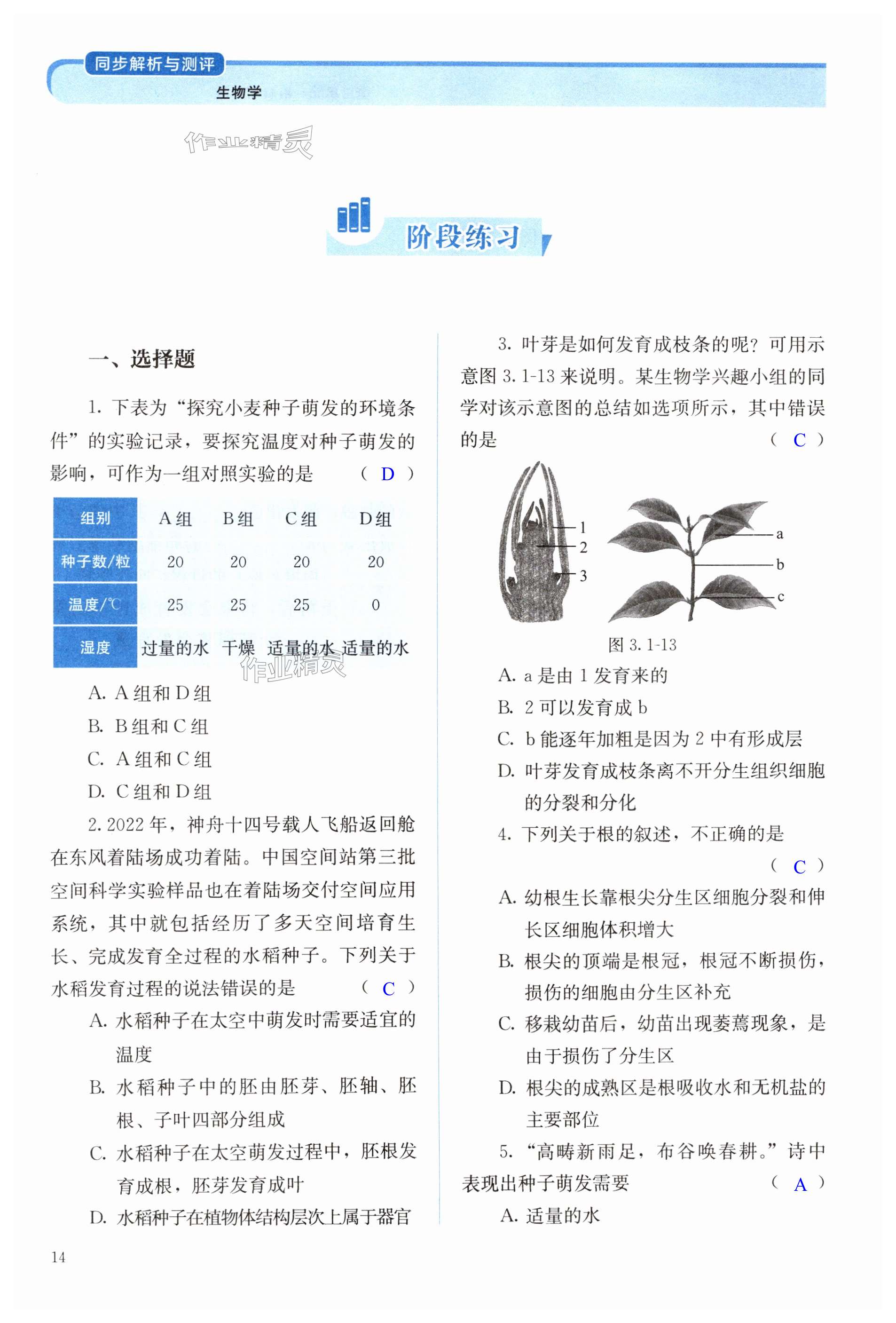 注:目前有些书本章节名称可能整理的还不是很完善,但都是按照顺序排列的,请同学们按照顺序仔细查找。练习册 2025年人教金学典同步练习册同步解析与测评七年级生物下册人教版 答案主要是用来给同学们做完题方便对答案用的,请勿直接抄袭。