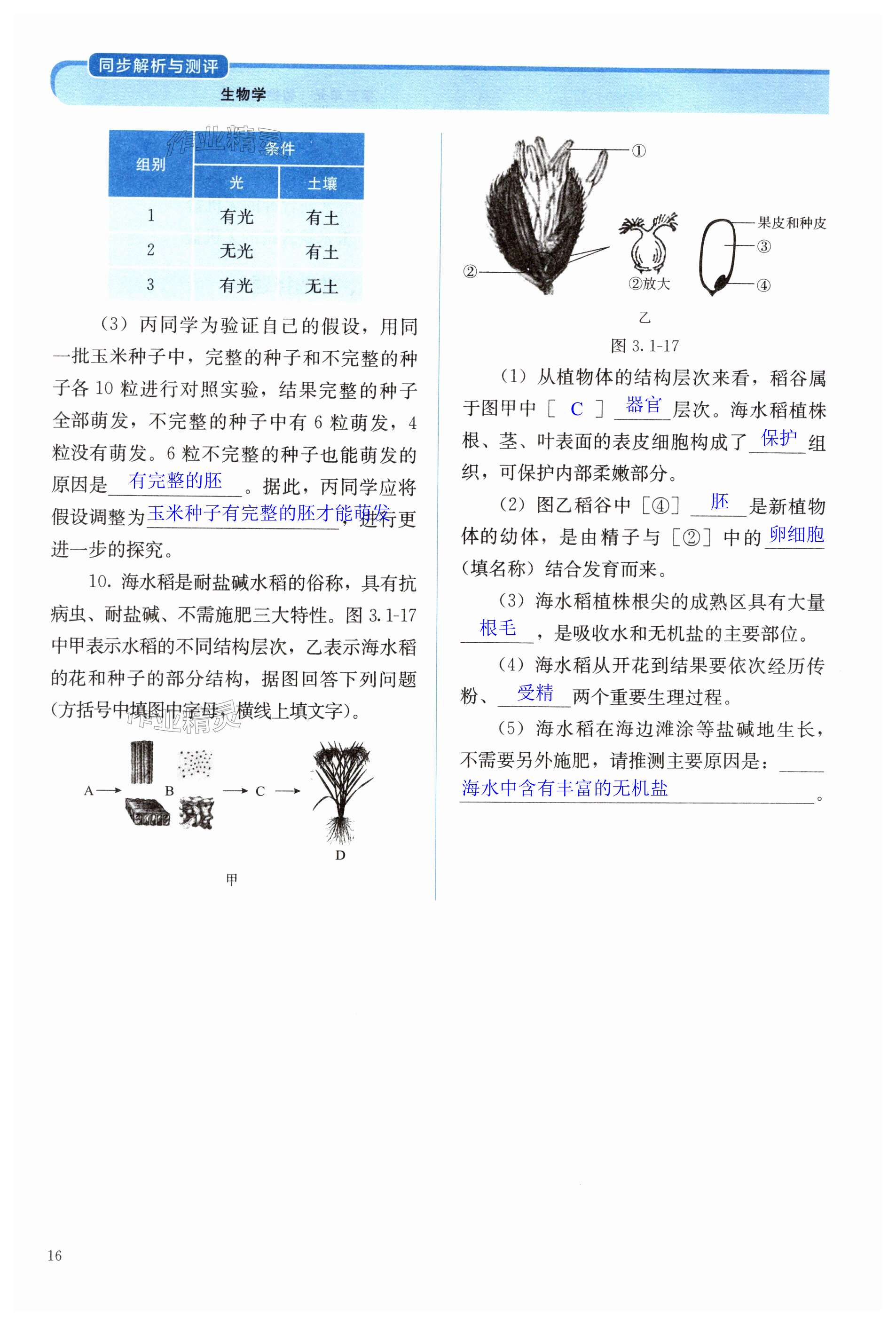 注:目前有些书本章节名称可能整理的还不是很完善,但都是按照顺序排列的,请同学们按照顺序仔细查找。练习册 2025年人教金学典同步练习册同步解析与测评七年级生物下册人教版 答案主要是用来给同学们做完题方便对答案用的,请勿直接抄袭。