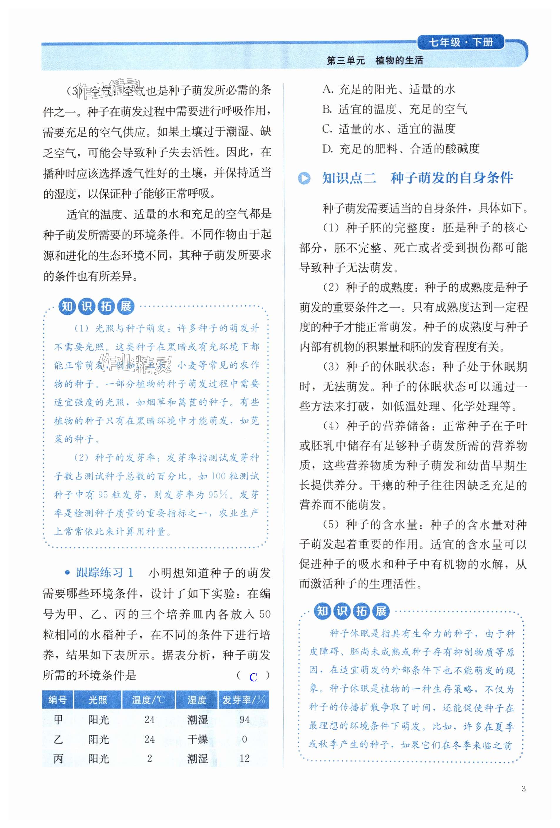 注:目前有些书本章节名称可能整理的还不是很完善,但都是按照顺序排列的,请同学们按照顺序仔细查找。练习册 2025年人教金学典同步练习册同步解析与测评七年级生物下册人教版 答案主要是用来给同学们做完题方便对答案用的,请勿直接抄袭。