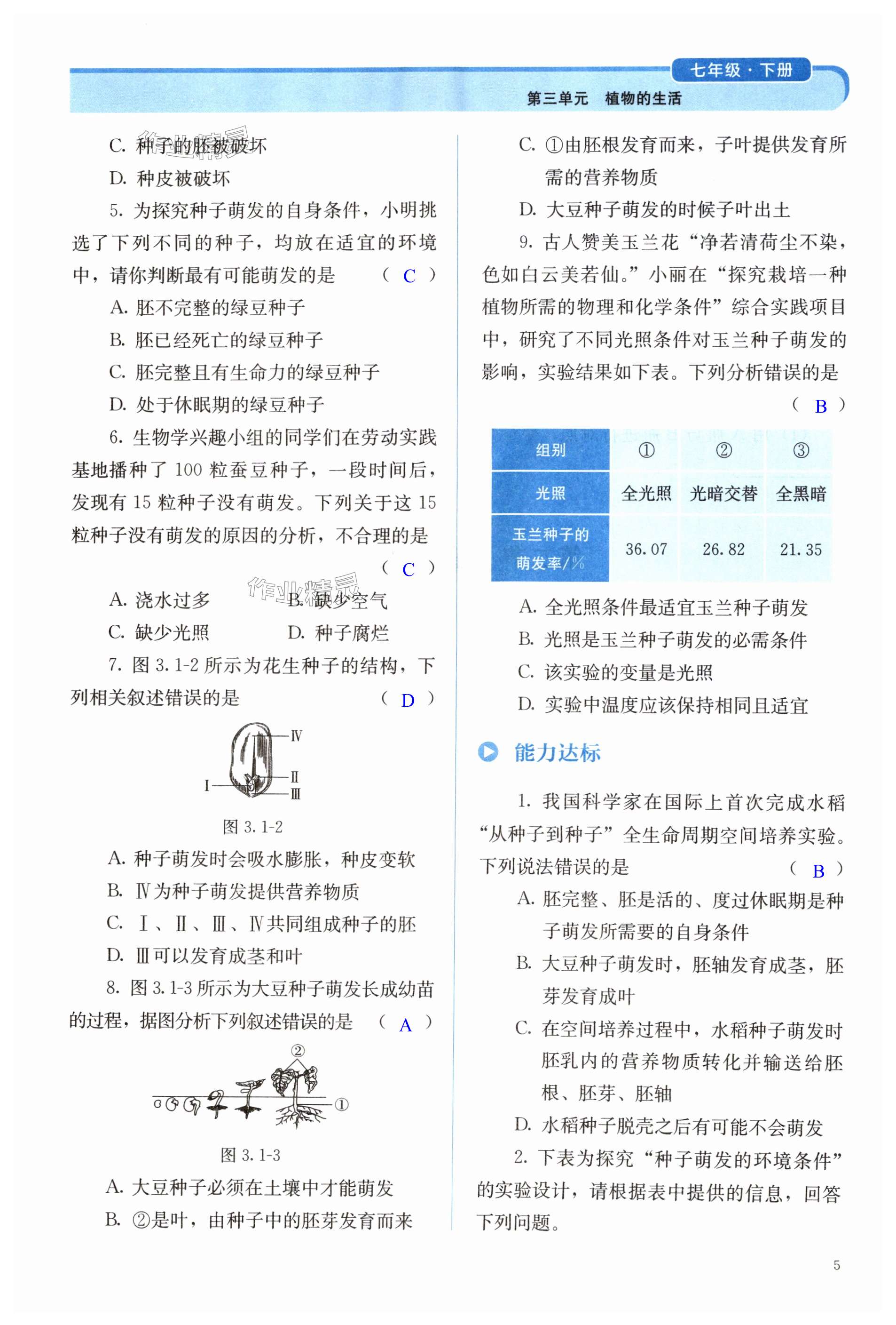 注:目前有些书本章节名称可能整理的还不是很完善,但都是按照顺序排列的,请同学们按照顺序仔细查找。练习册 2025年人教金学典同步练习册同步解析与测评七年级生物下册人教版 答案主要是用来给同学们做完题方便对答案用的,请勿直接抄袭。