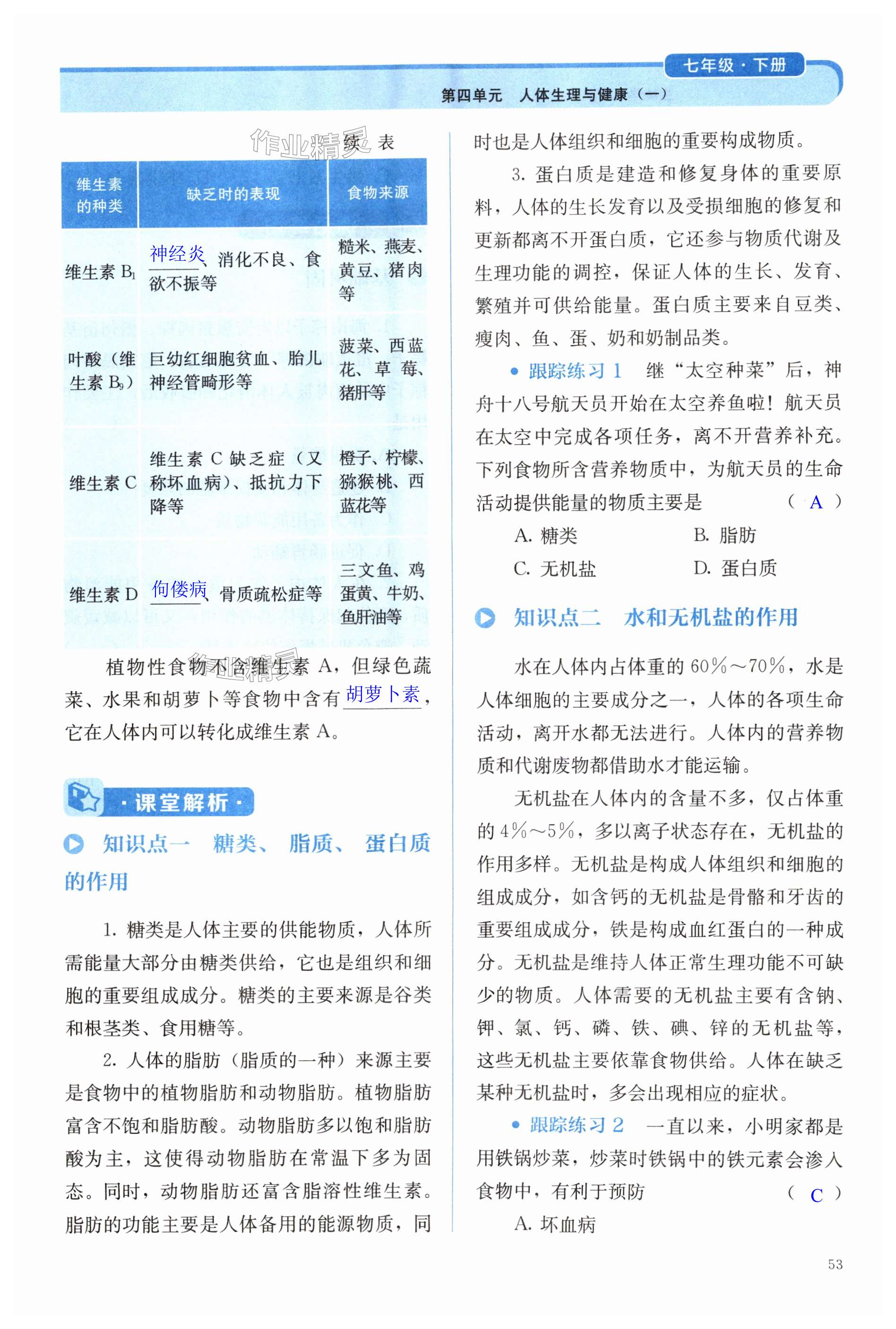 注:目前有些书本章节名称可能整理的还不是很完善,但都是按照顺序排列的,请同学们按照顺序仔细查找。练习册 2025年人教金学典同步练习册同步解析与测评七年级生物下册人教版 答案主要是用来给同学们做完题方便对答案用的,请勿直接抄袭。
