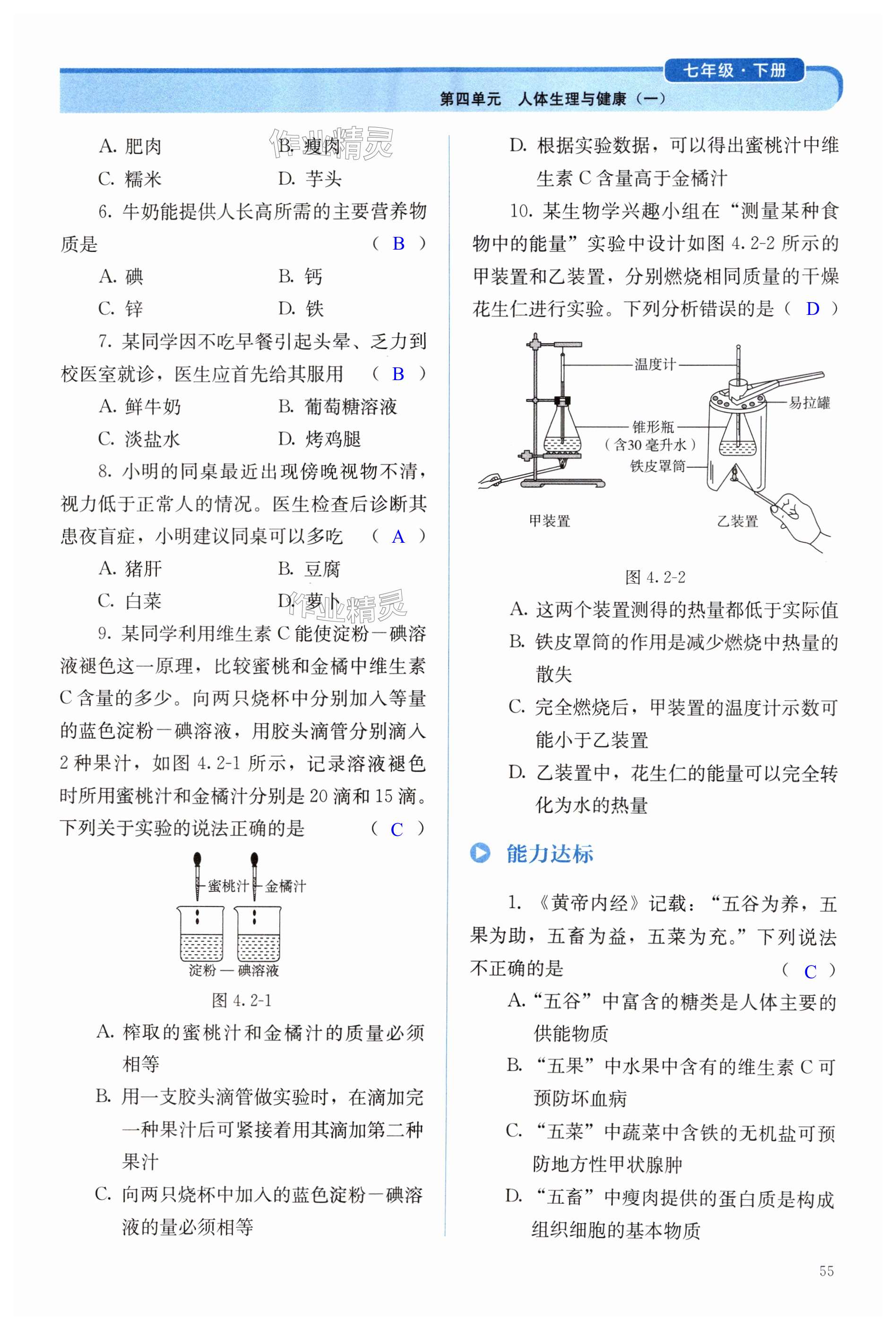 注:目前有些书本章节名称可能整理的还不是很完善,但都是按照顺序排列的,请同学们按照顺序仔细查找。练习册 2025年人教金学典同步练习册同步解析与测评七年级生物下册人教版 答案主要是用来给同学们做完题方便对答案用的,请勿直接抄袭。