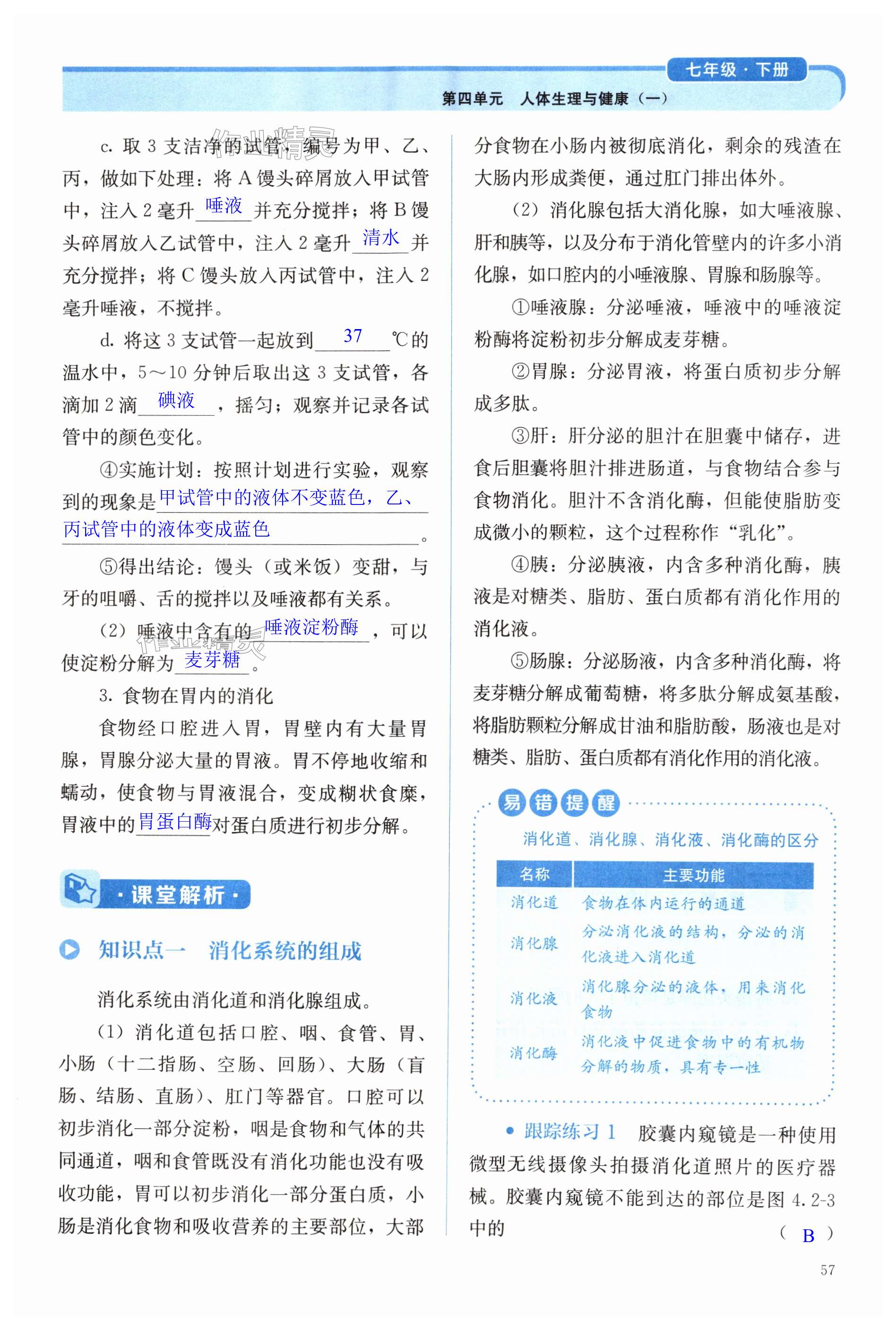 注:目前有些书本章节名称可能整理的还不是很完善,但都是按照顺序排列的,请同学们按照顺序仔细查找。练习册 2025年人教金学典同步练习册同步解析与测评七年级生物下册人教版 答案主要是用来给同学们做完题方便对答案用的,请勿直接抄袭。