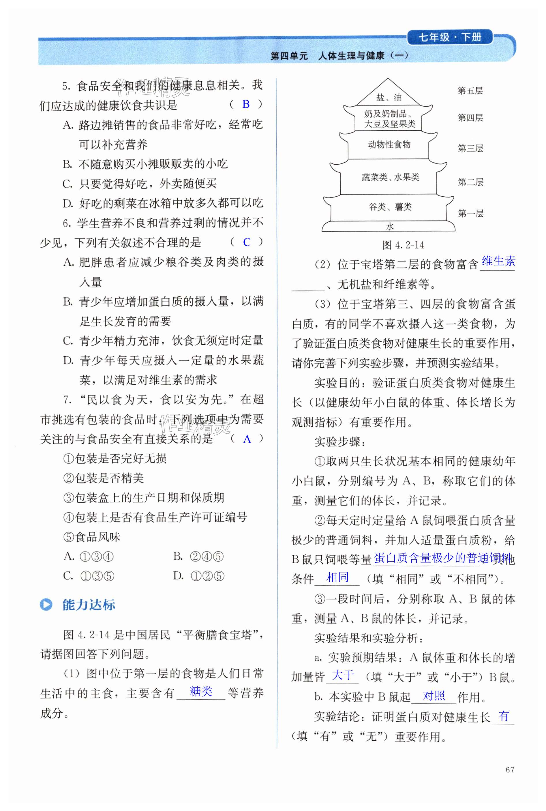 注:目前有些书本章节名称可能整理的还不是很完善,但都是按照顺序排列的,请同学们按照顺序仔细查找。练习册 2025年人教金学典同步练习册同步解析与测评七年级生物下册人教版 答案主要是用来给同学们做完题方便对答案用的,请勿直接抄袭。