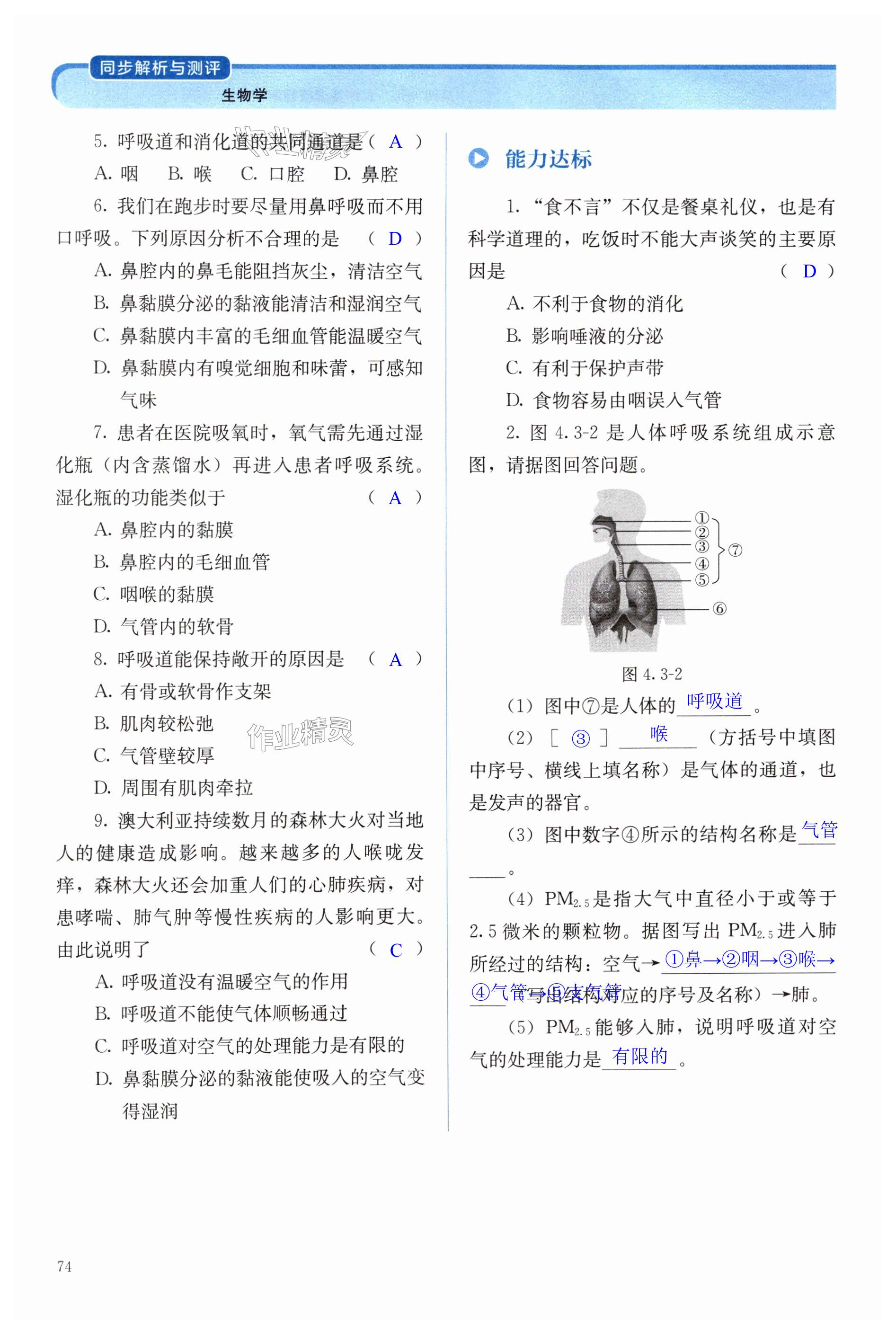注:目前有些书本章节名称可能整理的还不是很完善,但都是按照顺序排列的,请同学们按照顺序仔细查找。练习册 2025年人教金学典同步练习册同步解析与测评七年级生物下册人教版 答案主要是用来给同学们做完题方便对答案用的,请勿直接抄袭。