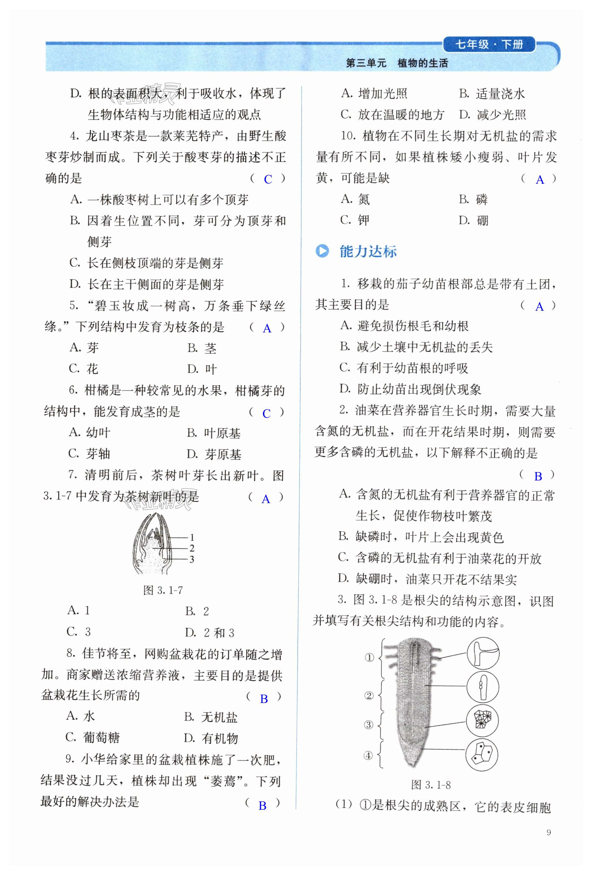 注:目前有些书本章节名称可能整理的还不是很完善,但都是按照顺序排列的,请同学们按照顺序仔细查找。练习册 2025年人教金学典同步练习册同步解析与测评七年级生物下册人教版 答案主要是用来给同学们做完题方便对答案用的,请勿直接抄袭。