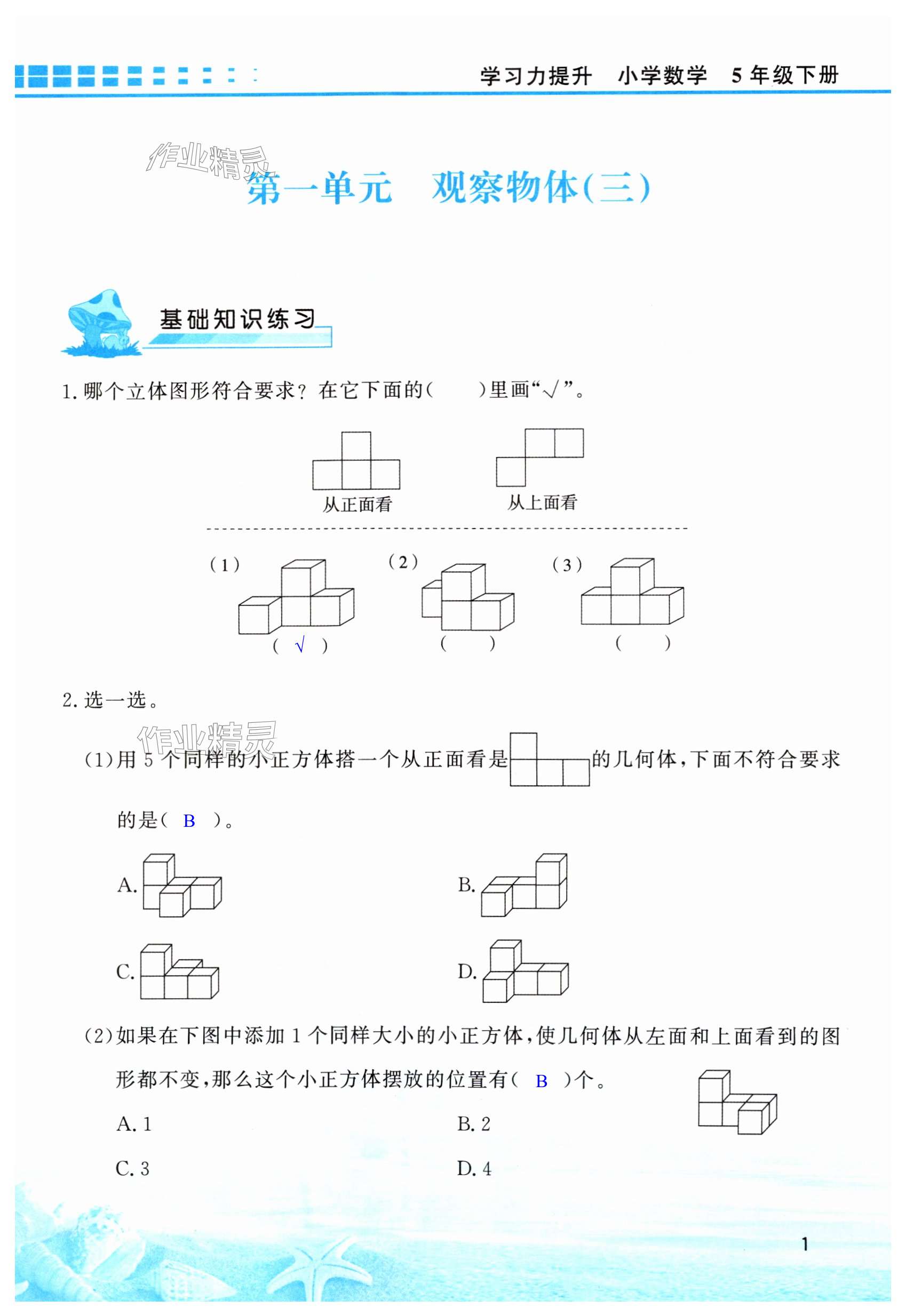 注:目前有些书本章节名称可能整理的还不是很完善,但都是按照顺序排列的,请同学们按照顺序仔细查找。练习册 2025年学习力提升五年级数学下册人教版 答案主要是用来给同学们做完题方便对答案用的,请勿直接抄袭。
