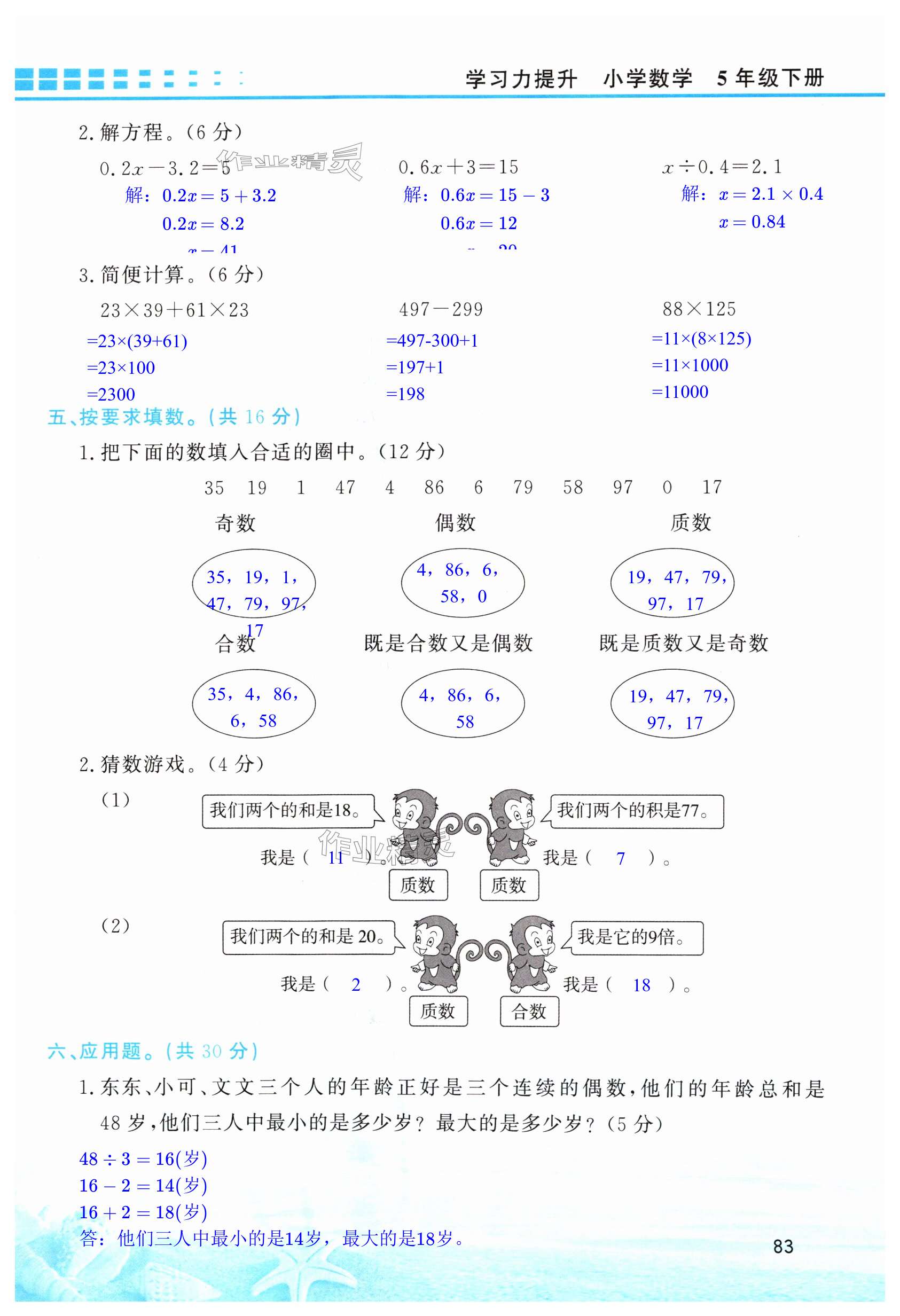 注:目前有些书本章节名称可能整理的还不是很完善,但都是按照顺序排列的,请同学们按照顺序仔细查找。练习册 2025年学习力提升五年级数学下册人教版 答案主要是用来给同学们做完题方便对答案用的,请勿直接抄袭。