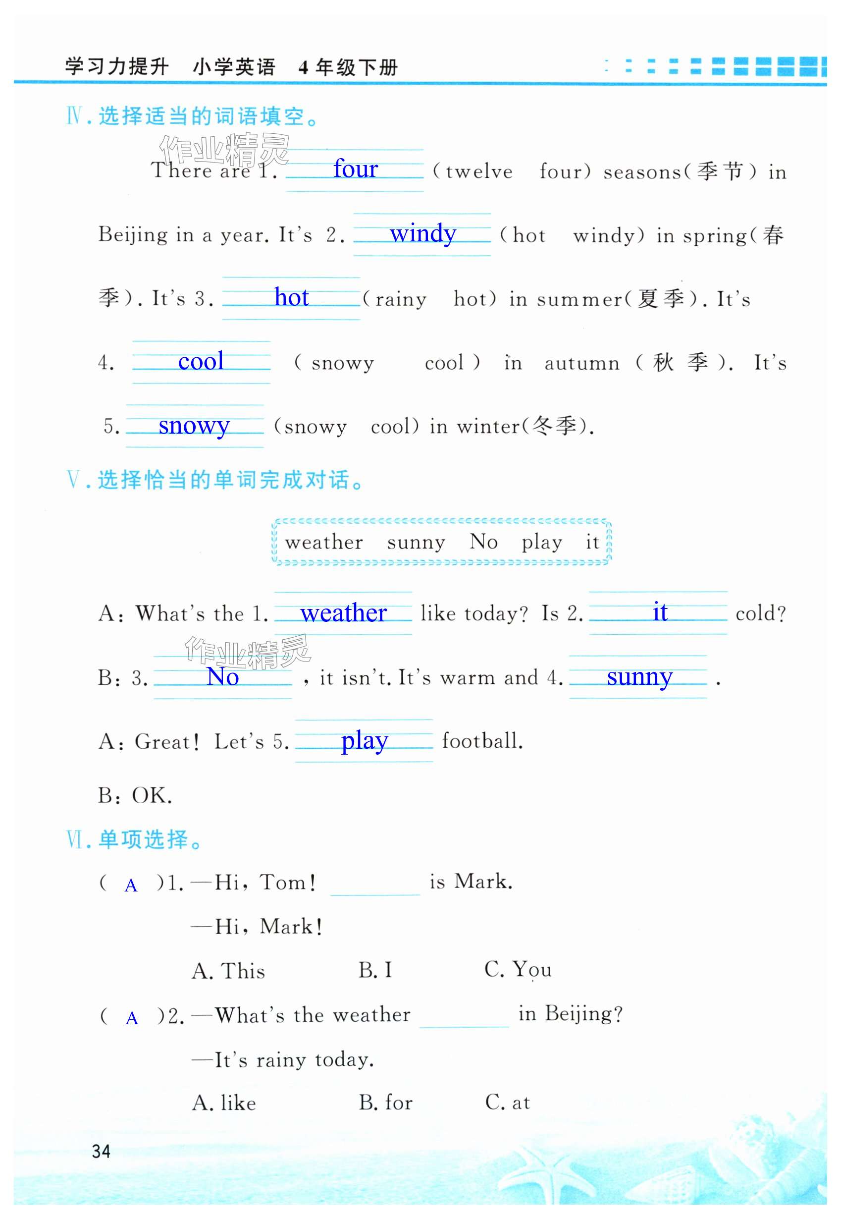 注:目前有些书本章节名称可能整理的还不是很完善,但都是按照顺序排列的,请同学们按照顺序仔细查找。练习册 2025年学习力提升四年级英语下册人教版 答案主要是用来给同学们做完题方便对答案用的,请勿直接抄袭。