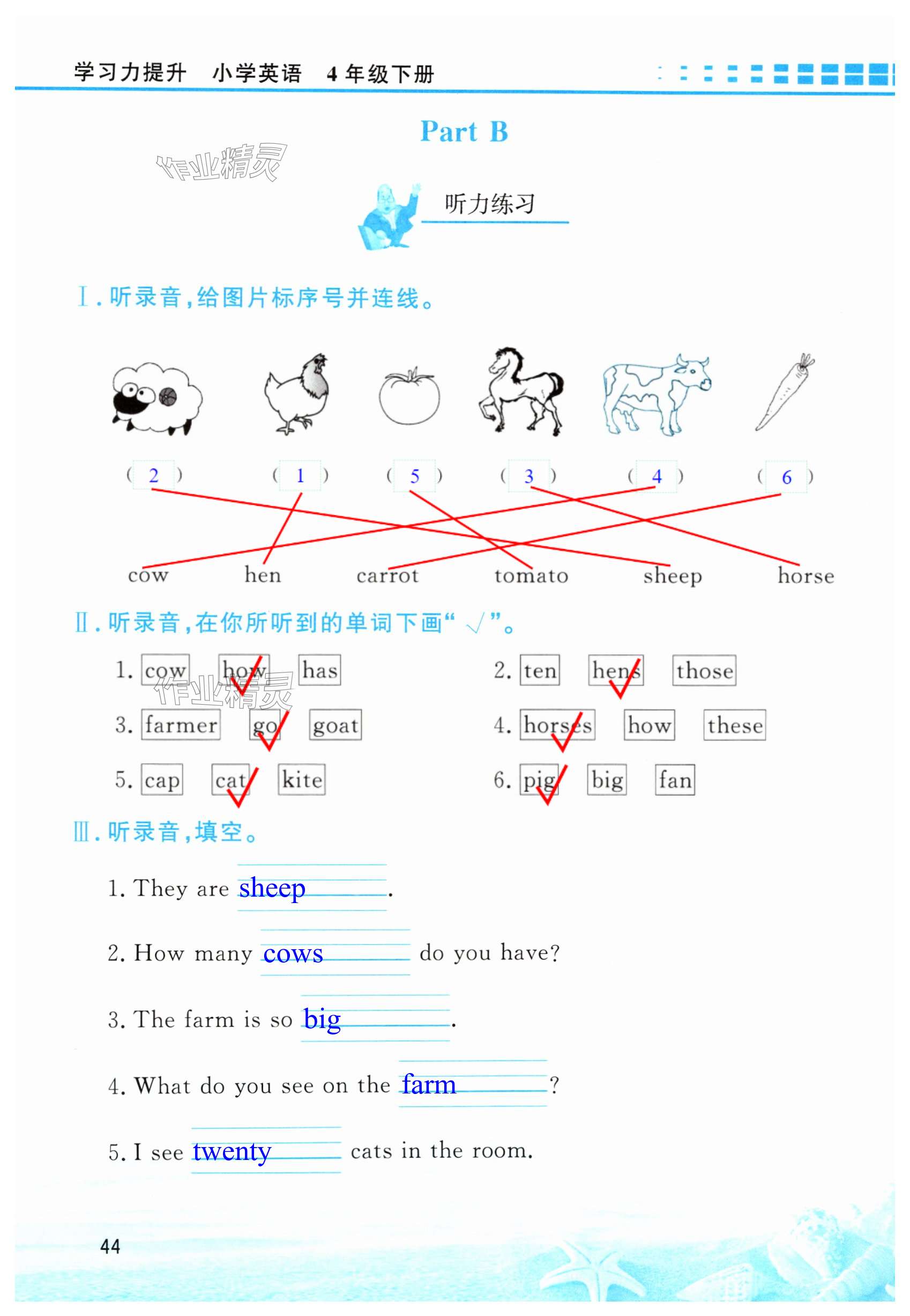 注:目前有些书本章节名称可能整理的还不是很完善,但都是按照顺序排列的,请同学们按照顺序仔细查找。练习册 2025年学习力提升四年级英语下册人教版 答案主要是用来给同学们做完题方便对答案用的,请勿直接抄袭。