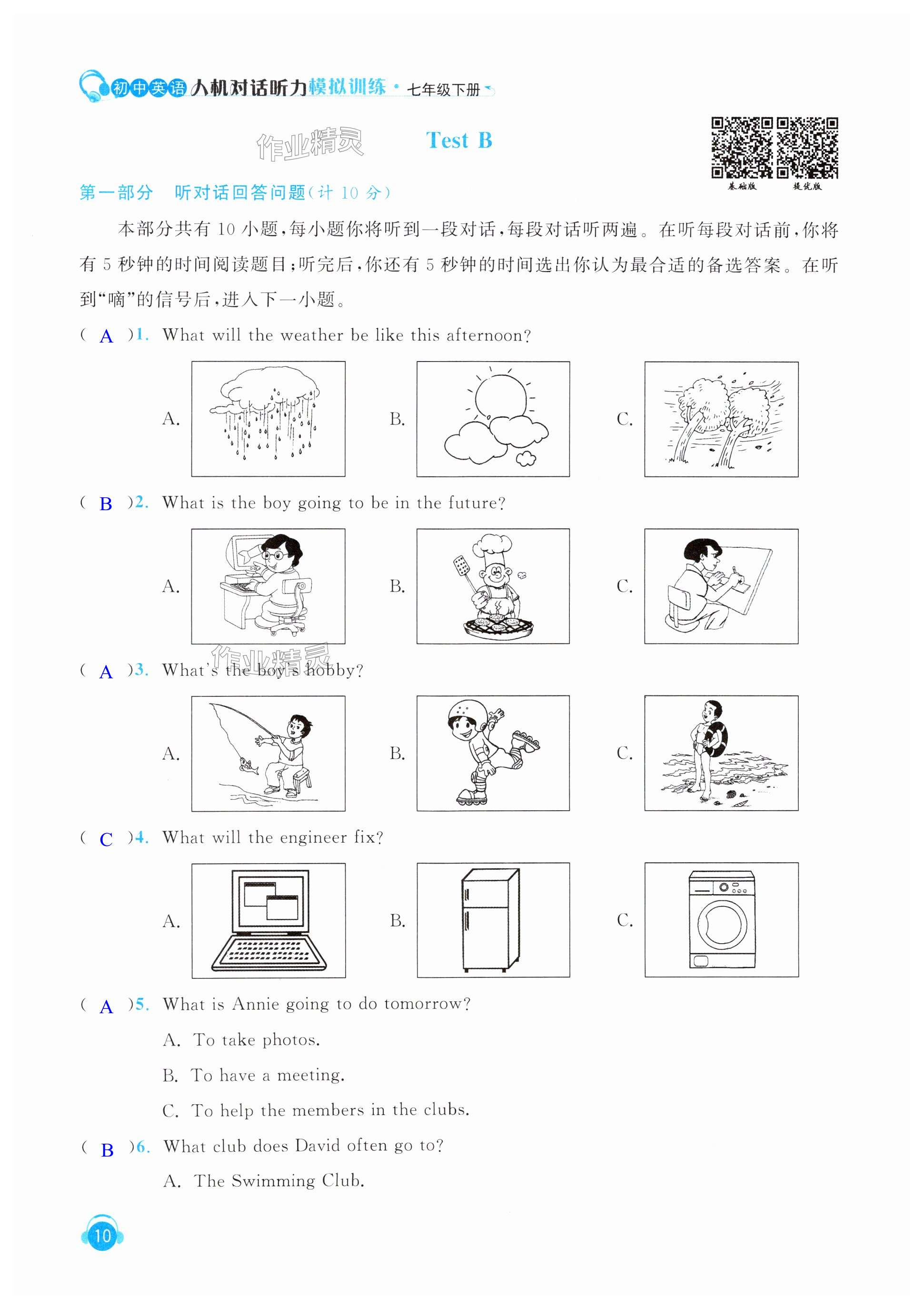 注:目前有些书本章节名称可能整理的还不是很完善,但都是按照顺序排列的,请同学们按照顺序仔细查找。练习册 2025年人机对话听力模拟训练七年级英语下册译林版 答案主要是用来给同学们做完题方便对答案用的,请勿直接抄袭。