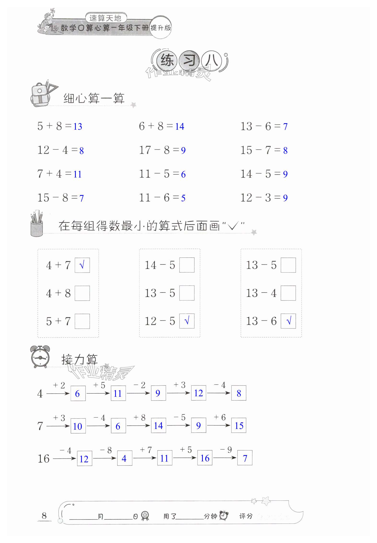 注:目前有些书本章节名称可能整理的还不是很完善,但都是按照顺序排列的,请同学们按照顺序仔细查找。练习册 2025年速算天地数学口算心算一年级下册苏教版提升版 答案主要是用来给同学们做完题方便对答案用的,请勿直接抄袭。