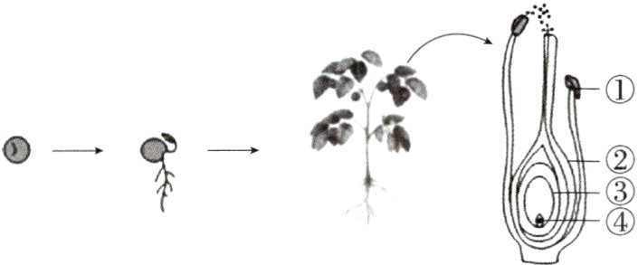 解析 (1)该植物是由种子发育而来的,种子中的胚是新植物的幼体,胚是由受精卵发育而来的,所以该植物的生殖方式是有性生殖。(2)绿色开花植物要形成果实和种子必须经过传粉和受精两个过程,若传粉时期遇到连续暴雨或大风的天气,会造成传粉不足,所以农民应采取的措施是人工辅助授粉。
