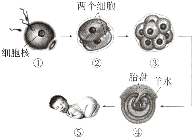 (2)受精卵不断进行细胞分裂,逐渐发育成胚泡。胚泡缓慢地移动到③子宫中,最终附着在子宫内膜上,这就是怀孕的开始。