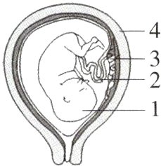 (1)母体和胎儿的血液______(填“会”或“不会”)直接接触,[3]______是母体和胎儿进行物质交换的器官,其靠近胚胎的一面还附有[2]______,为胚胎输送营养物质并运输废物。
